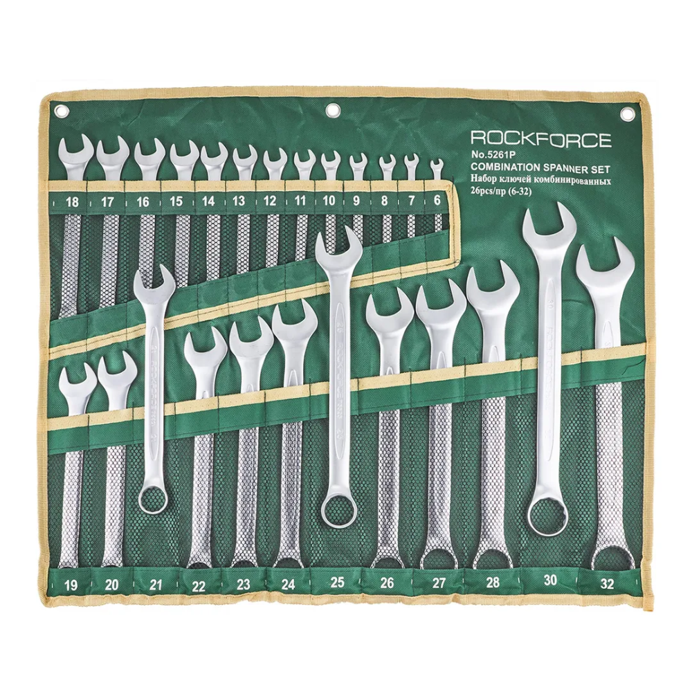 ПроизводителиНабор ключей комбинированных 25+1пр.(6-28, 30, 32мм+ключ рожковый 36х41мм)(RF-5261P+1) RockFORCE