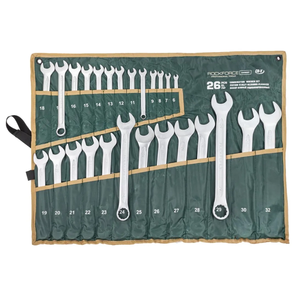 ПроизводителиНабор ключей комбинированных 26пр. (6-30, 32мм), на полотне (RF-5266P) RockFORCE