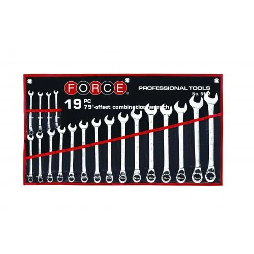 ПроизводителиНабор ключей комбинированных 6-24мм, 75град., 19пр., Cr-V (5192) FORCE