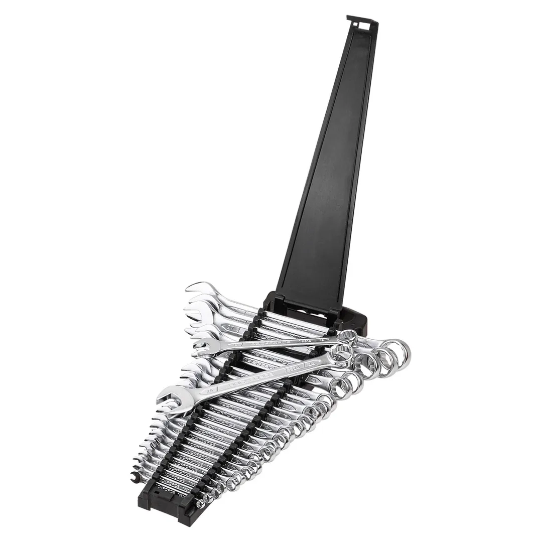 Ключи комбинированные - универсальные гаечные ключи, совмещающие в себе функционал и преимущества рожковых и накидных ключей. Зевы комбинированных ключей имеют одинаковые размеры. Ключи гаечные с открытым и кольцевым зевами предназначены для монтажа либо демонтажа резьбовых соединений. Набор изготовлен из высококачественной стали Cr-V. Ключи поставляются в трапециевидном пластиковом держателе. Комплектация: 6, 7, 8, 9, 10-2шт, 11, 12-2шт, 13-2шт, 14-2шт, 15, 16, 17-2шт, 18, 19, 21, 22 ,24, 27, 30, 32ммПроизводитель: Рок Форс, Лтд.