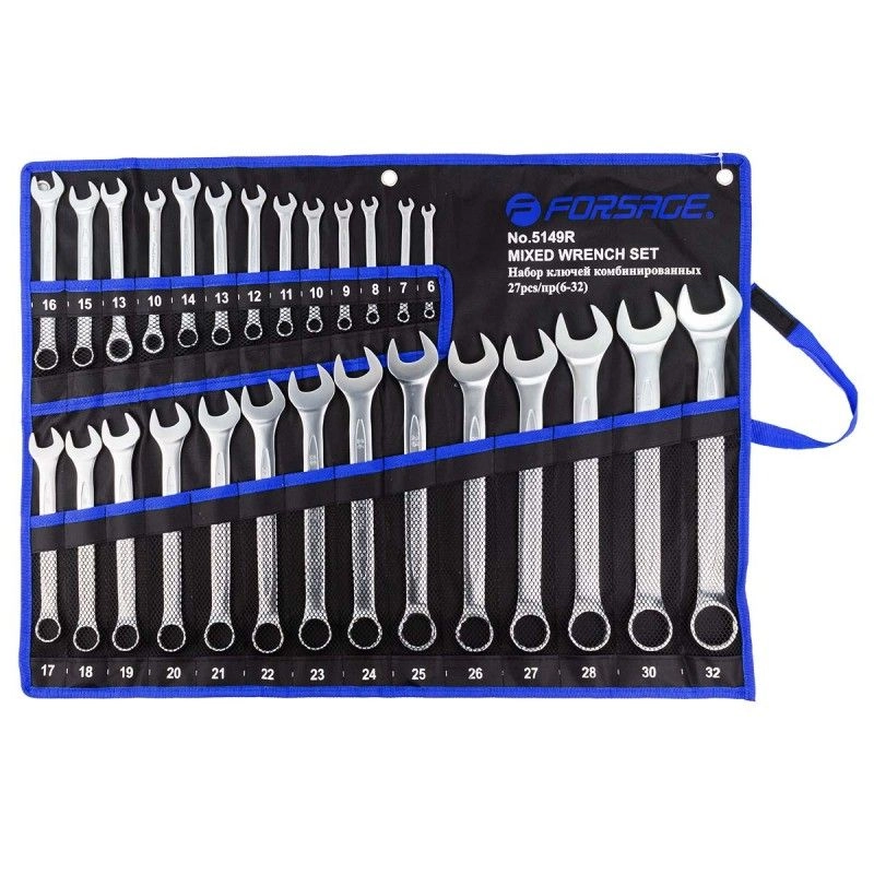 ПроизводителиНабор ключей комбинированных 6-32мм + трещ.ключи 10,13мм, 27пр. (F-5149R) Forsage