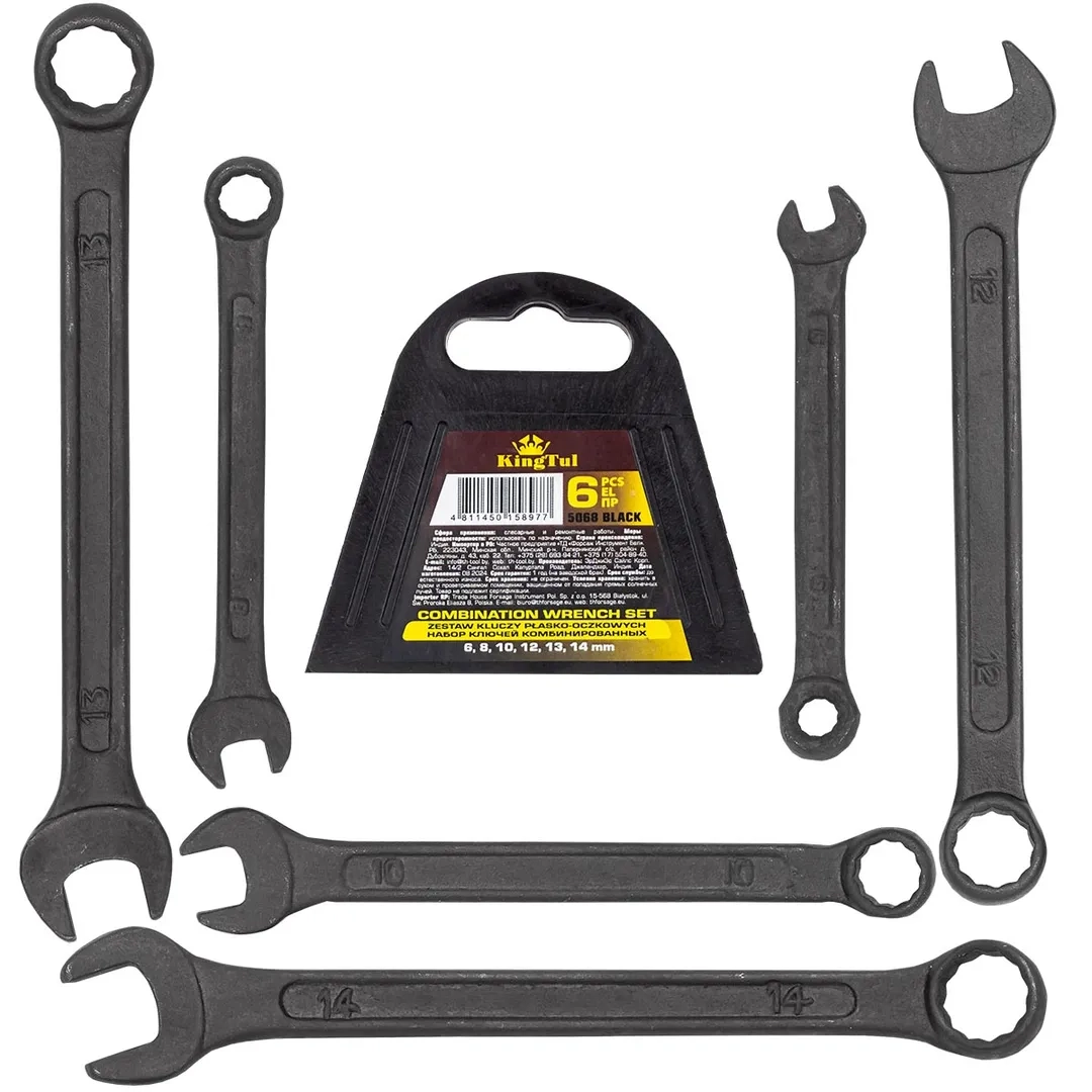 ПроизводителиНабор ключей комбинированных 6пр.(6,8,10,12,13,14мм)(KT-5068 BLACK) KINGTUL