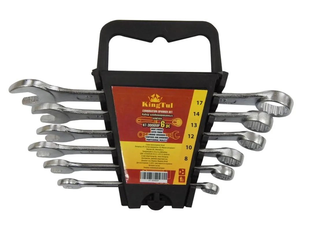 ПроизводителиНабор ключей комбинированных 6пр. (8,10,12,13,14,17мм) в пласт. держателе (KT-3006MP) KINGTUL