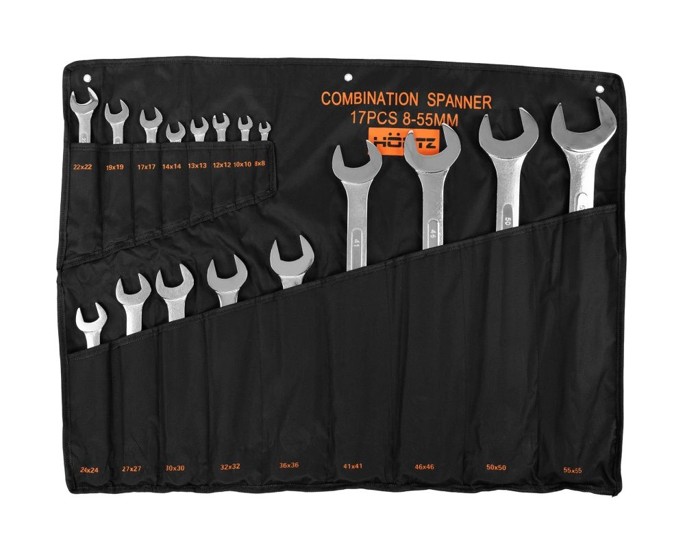 ПроизводителиНабор ключей комбинированных 8-55мм, 17пр., хром., на полотне (996894) HORTZ