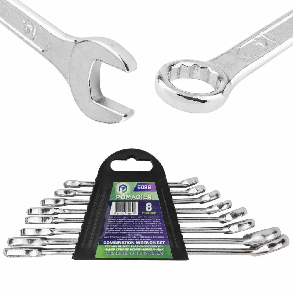 ПроизводителиНабор ключей комбинированных 8пр. (6, 8, 10, 12, 13, 14, 17, 19мм)(POM-5086) POMAGIER