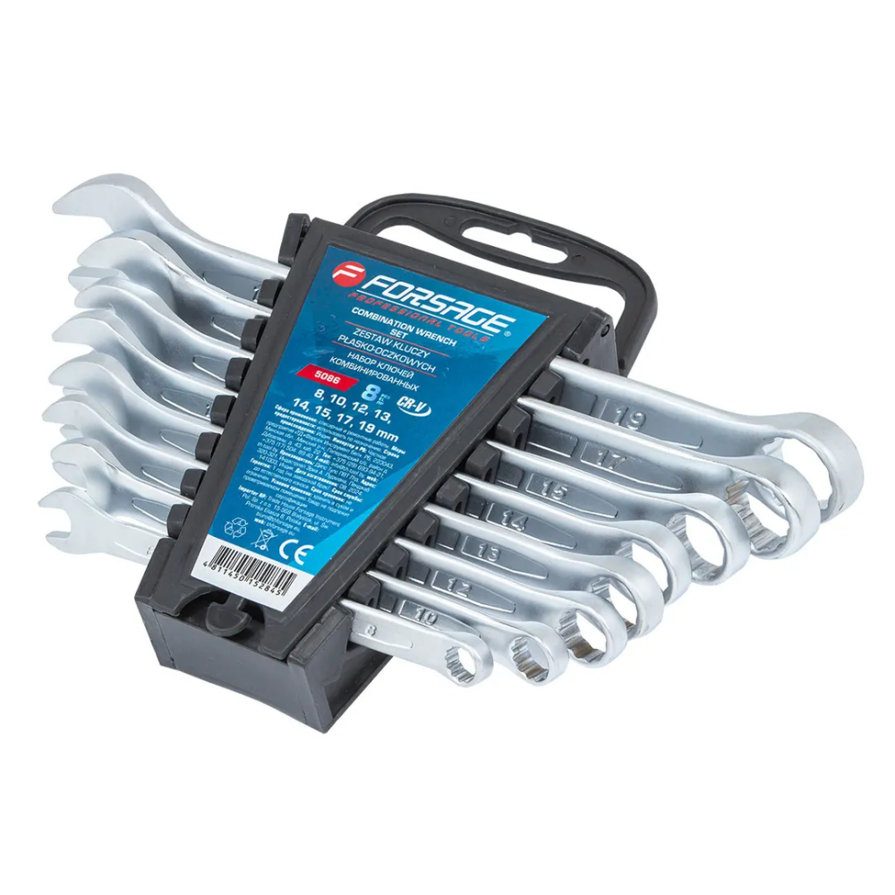 ПроизводителиНабор ключей комбинированных 8пр. (8, 10, 12-15, 17, 19мм)(F-5086) Forsage