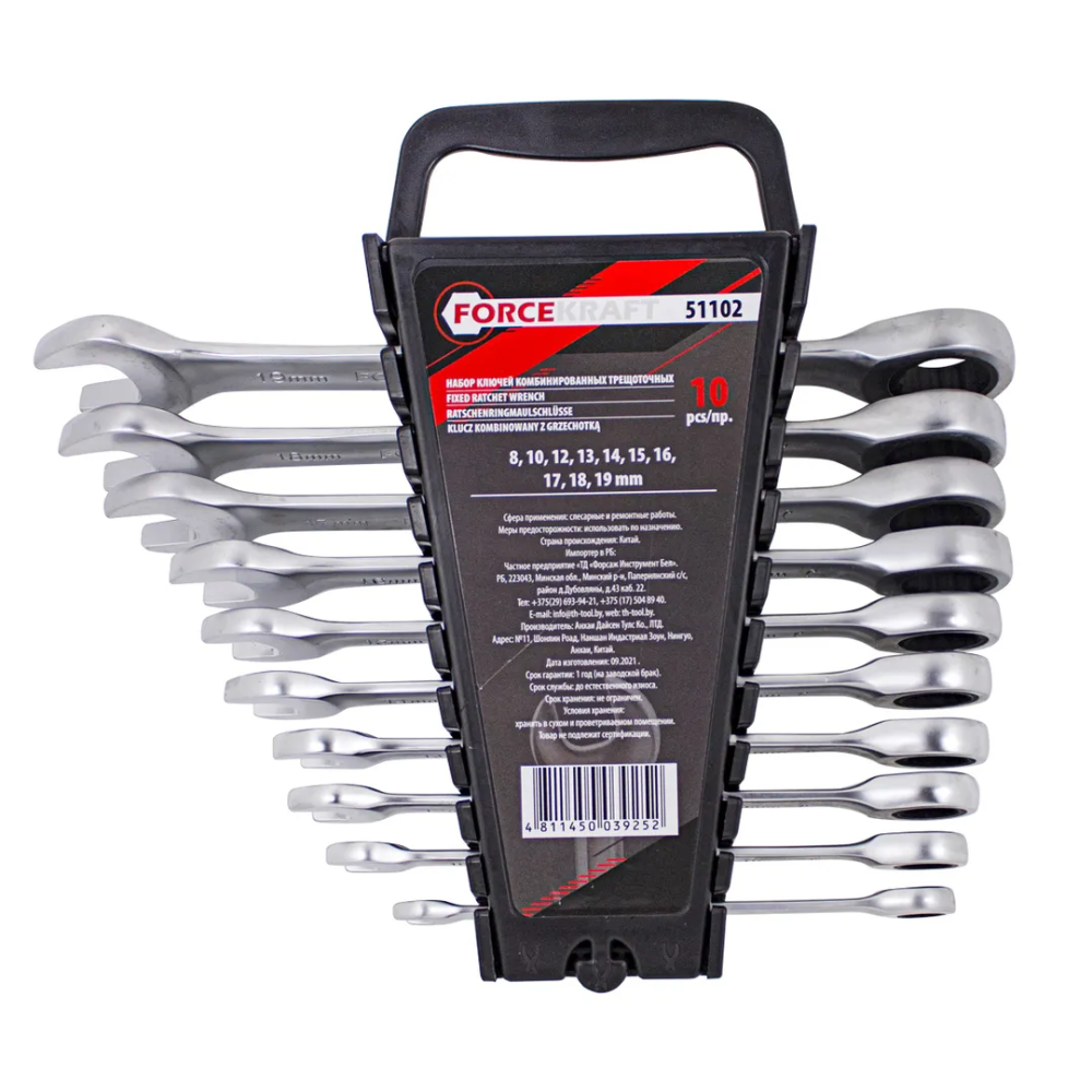ПроизводителиНабор ключей комбинированных трещоточных 10пр. (8,10,12-19мм)(FK-51102) FORCEKRAFT