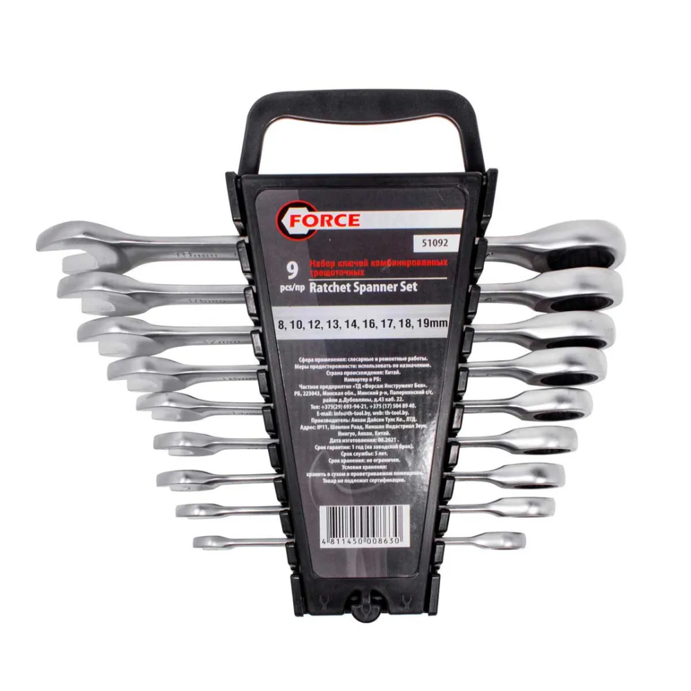 ПроизводителиНабор ключей комбинированных трещоточных, 9пр. (8,10,12,13,14,16,17,18,19мм)(FK-51092) FORCEKRAFT