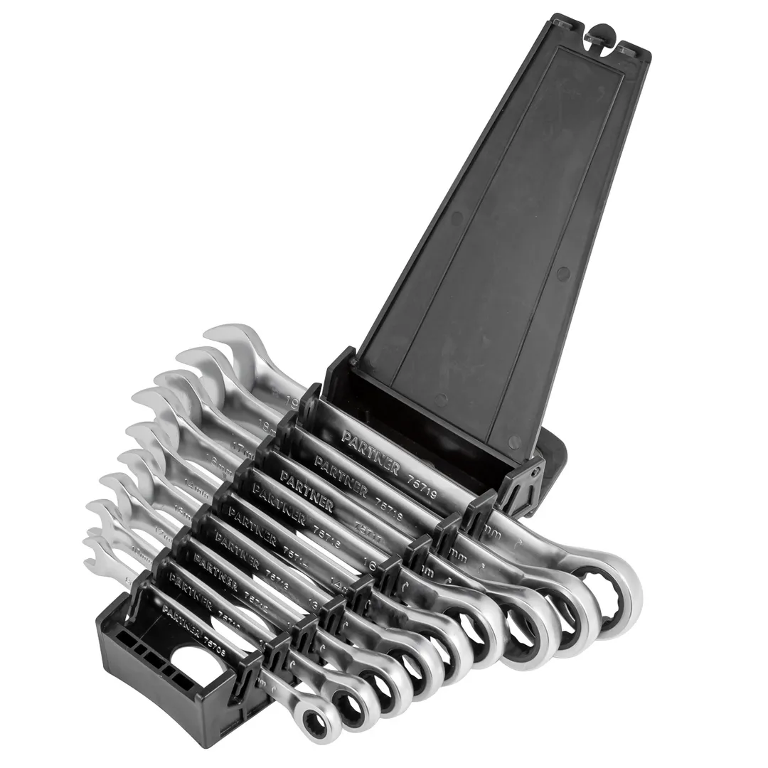 ПроизводителиНабор ключей комбинированных трещоточных, 9пр. (8,10,12,13,14,16,17,18,19мм)(PA-51092) Partner