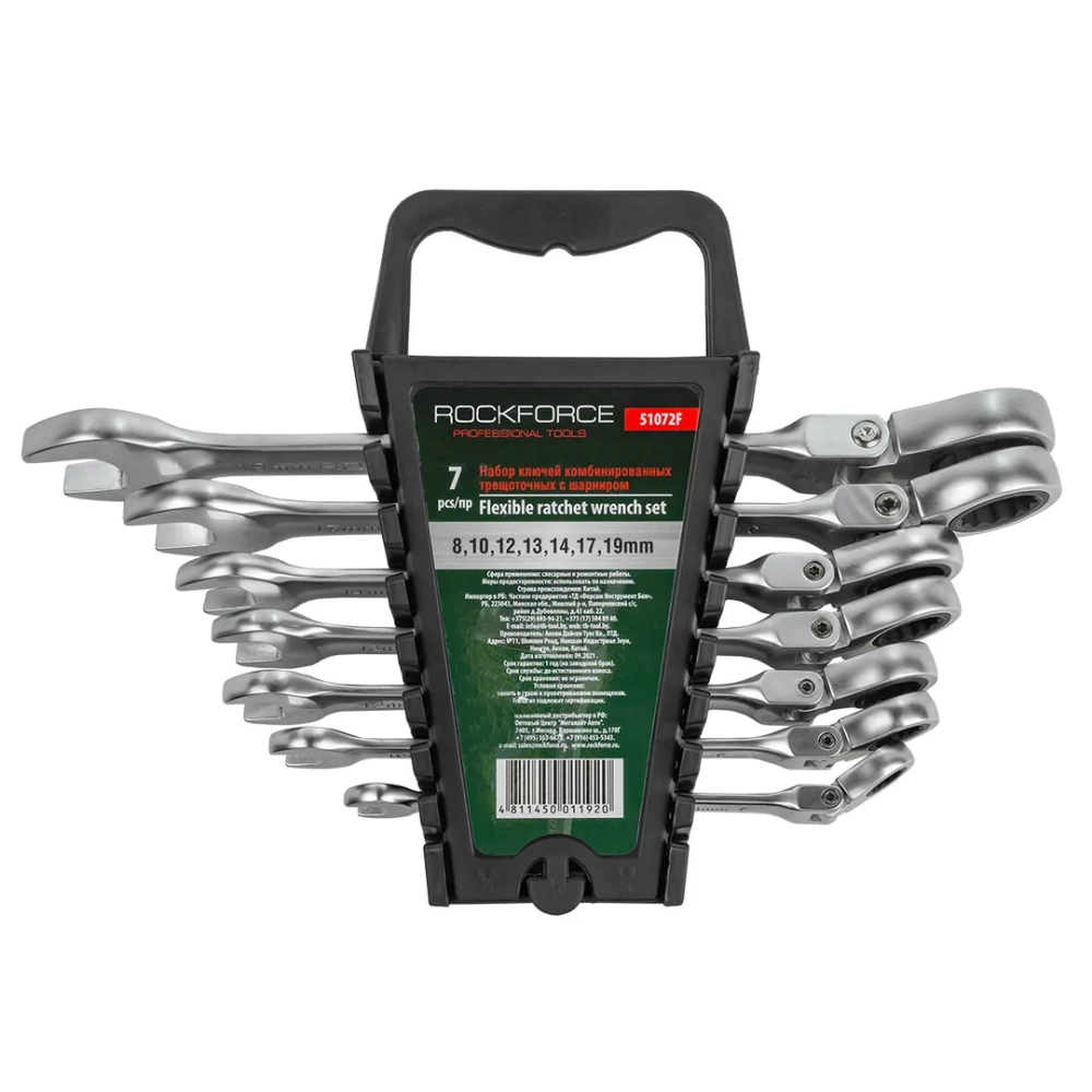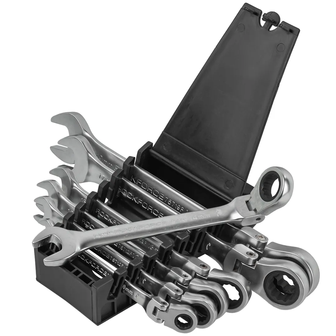 ПроизводителиНабор ключей комбинированных трещоточных с шарниром 7пр. 8-19мм (RF-51072F) RockFORCE