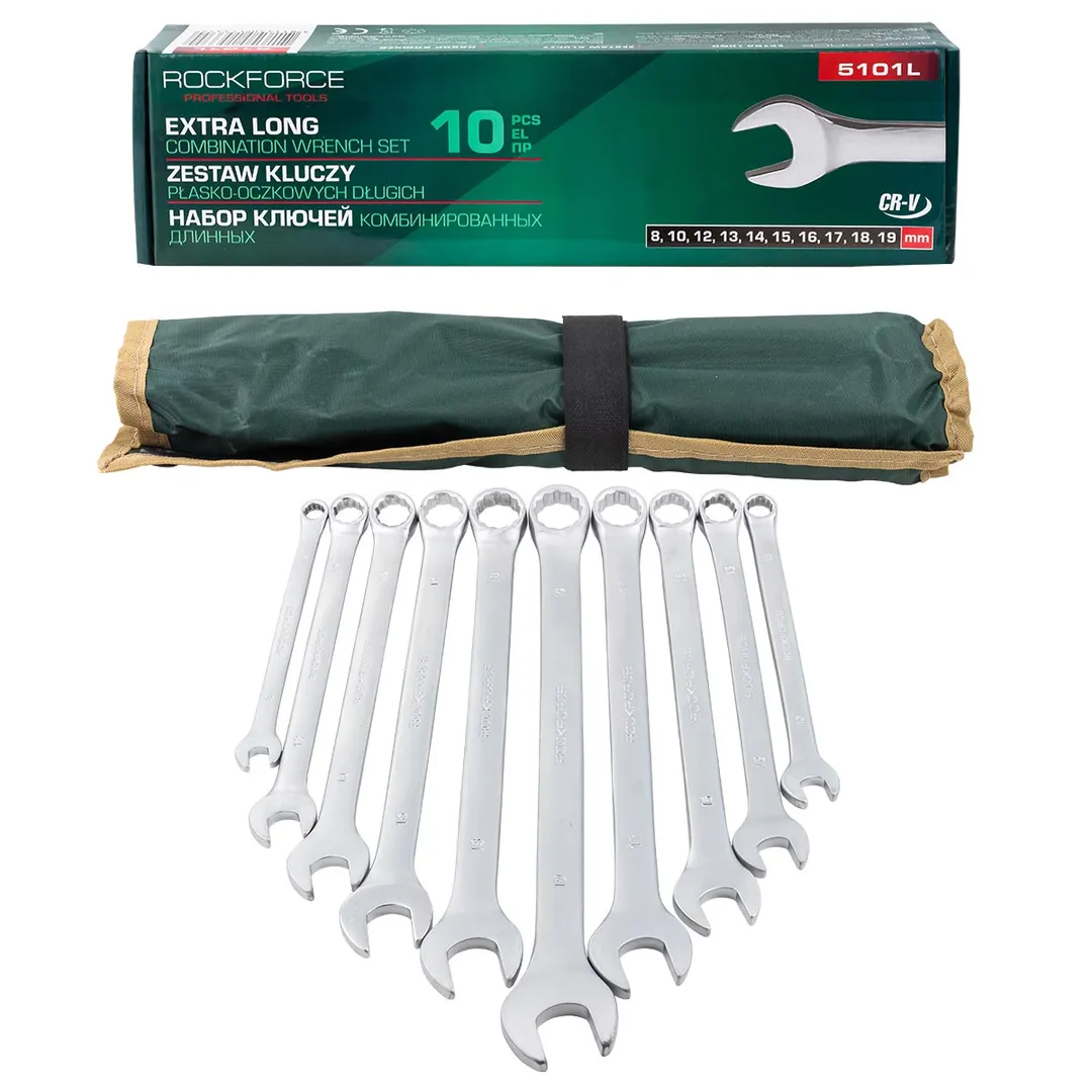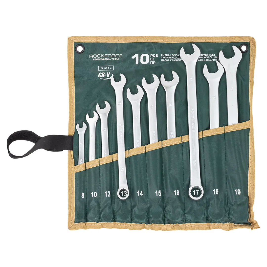 ПроизводителиНабор ключей комбинированных удлиненных 10пр. (8, 10, 12-19мм)на полотне (RF-5101L) RockFORCE