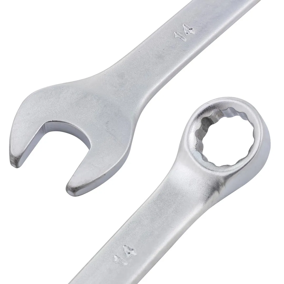 Ключи комбинированные – универсальные гаечные ключи, совмещающие в себе функционал и преимущества рожковых и накидных ключей. Зевы комбинированных ключей имеют одинаковые размеры. Благодаря удлиненной модели ключи удобно использовать для работы в ограниченном пространстве и труднодоступных местах. Ключи гаечные с открытым и кольцевым зевами предназначены для монтажа либо демонтажа резьбовых соединений. Набор изготовлен из высококачественной стали Cr-V.