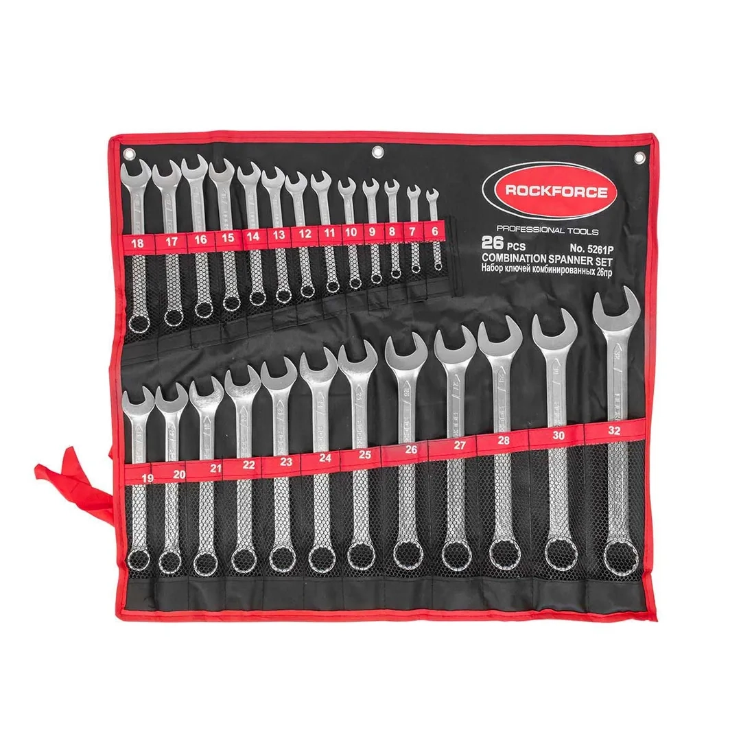ПроизводителиНабор ключей комбинированных 6-32мм, 26пр. (6-28, 30, 32мм), на полотне (RF-5261P) Rock FORCE