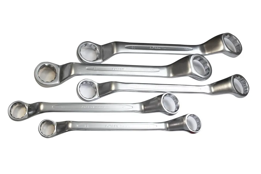 ПроизводителиНабор ключей накидных отогнутых на 45грд. 5пр. 32-55мм, на полотне (P-5059P) PATRON
