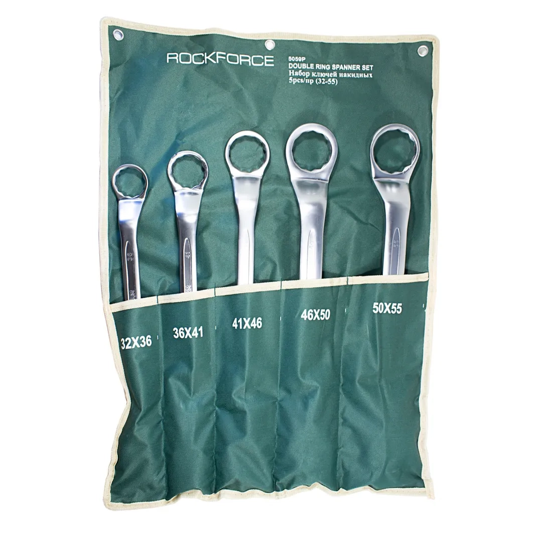 ПроизводителиНабор ключей накидных отогнутых на 45грд. 5пр. 32-55мм, на полотне (RF-5059P) RockFORCE