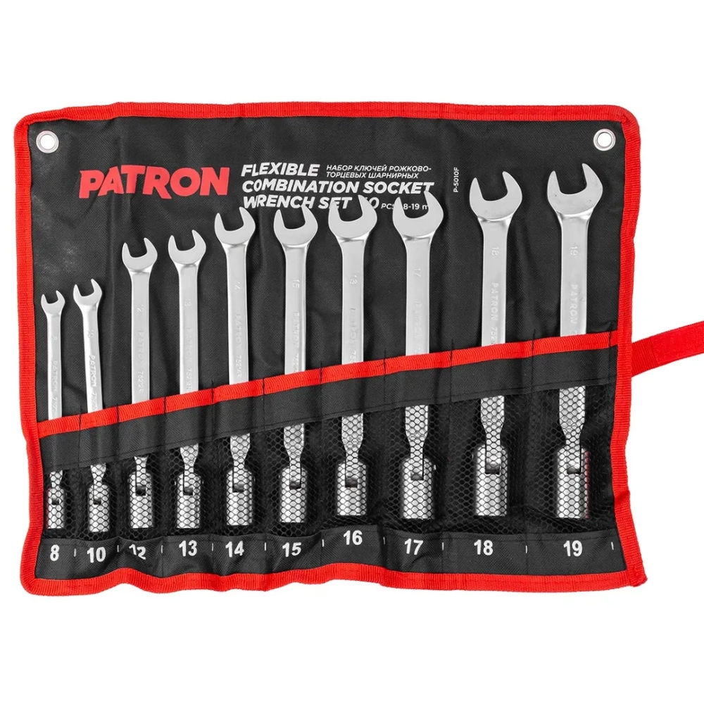ПроизводителиНабор ключей рожково-торцевых шарнирных 10 пр. 8-19мм, на полотне (P-5010F) PATRON