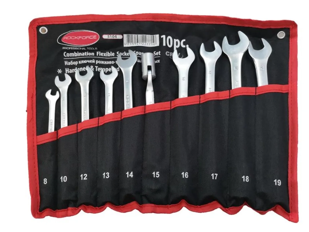 ПроизводителиНабор ключей рожково-торцевых шарнирных 10пр. (8, 10, 12-19мм) на полотне (RF-5104) RockFORCE