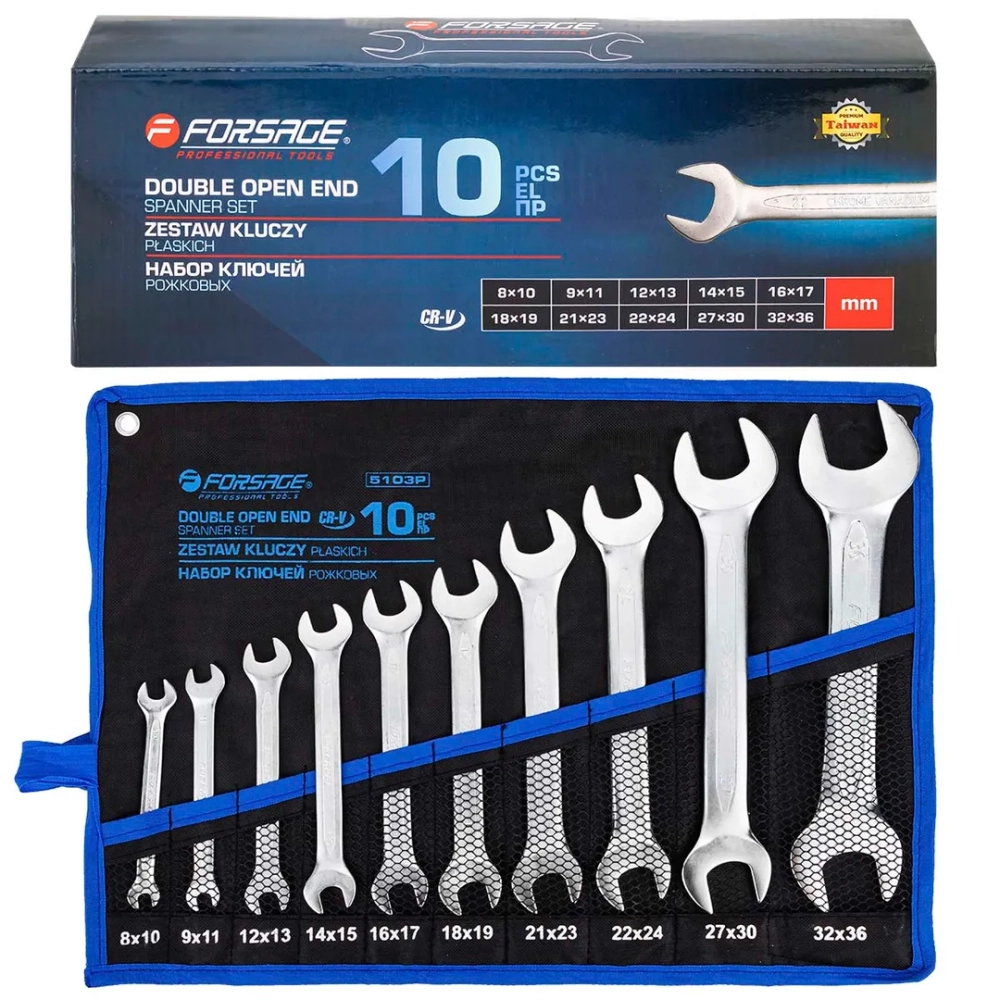 ПроизводителиНабор ключей рожковых, 10пр. 8-36мм (F-5103P) Forsage