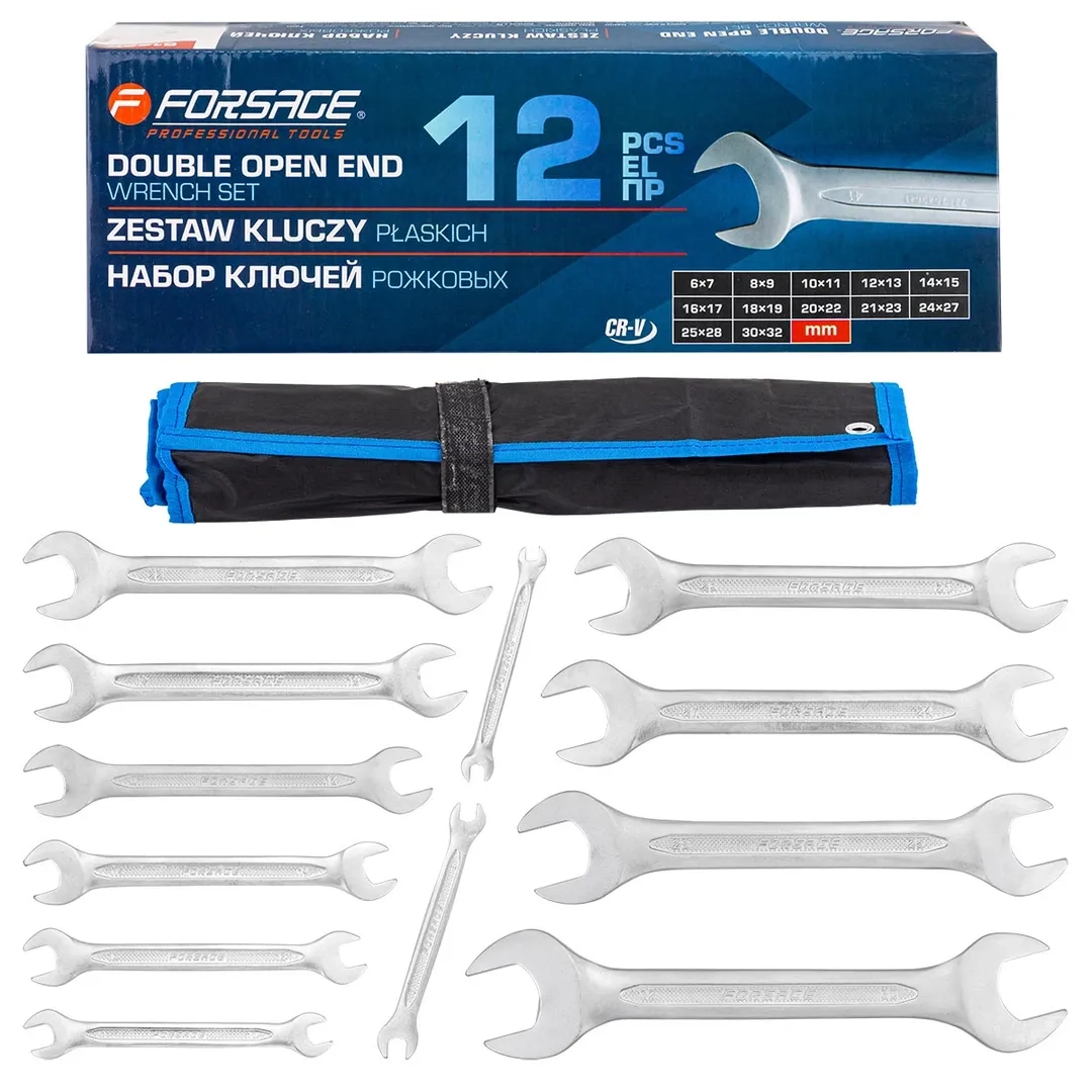 ПроизводителиНабор ключей рожковых 6-32мм, 12пр., на полотне (F-5122P) Forsage
