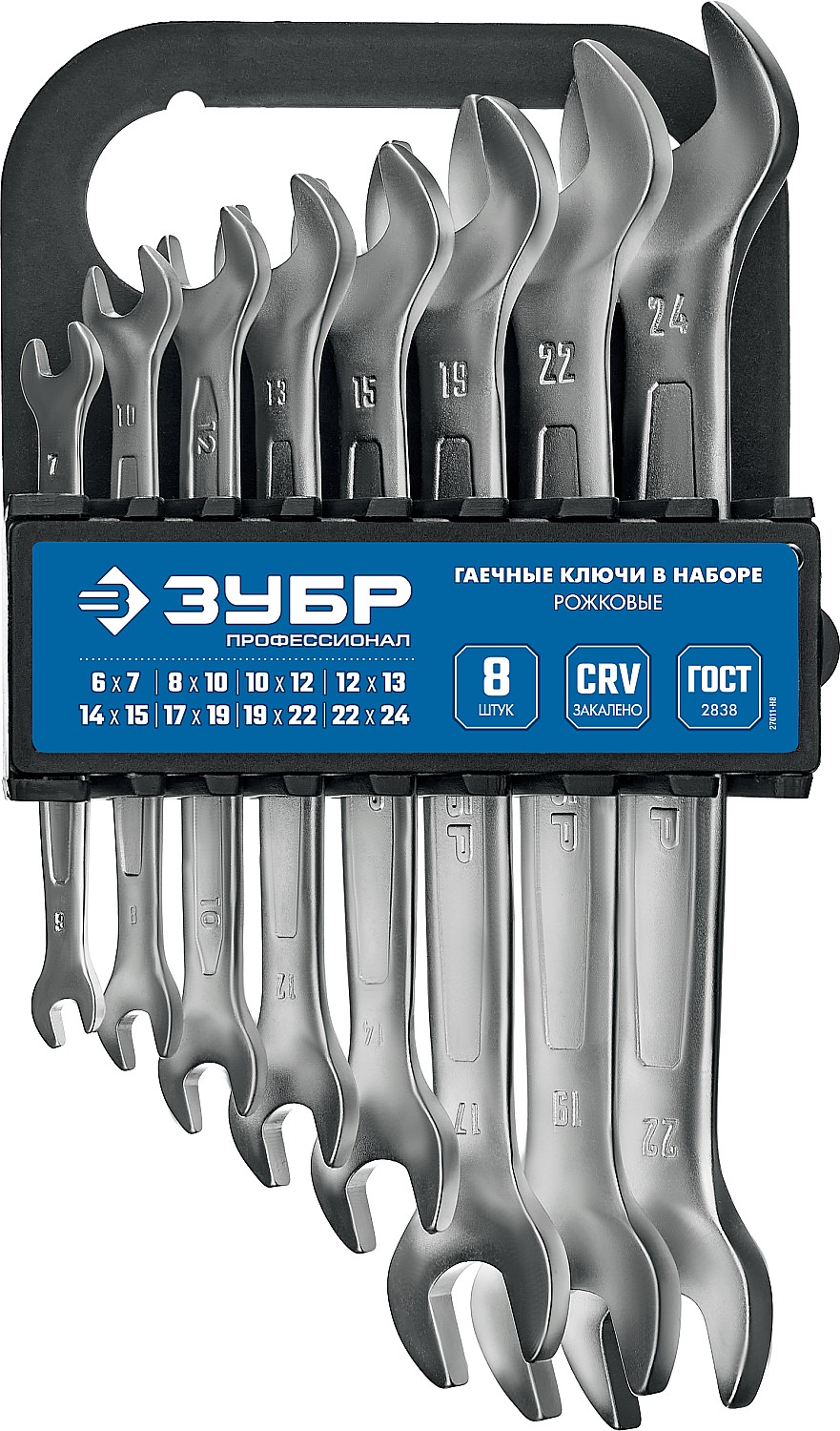 ПроизводителиНабор ключей рожковых 6-24мм, 8пр., Cr-V (27011-H8_z01) ЗУБР