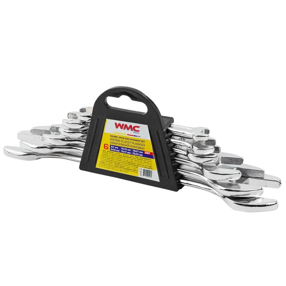 Набор гаечных рожковых ключей из 6 предметов от бренда WMC Tools предназначен для выполнения слесарных, монтажных и ремонтных работ, ключи рожковые изготовлены из прочной инструментальной стали CrV, что гарантирует прочность и долговечность инструмента.