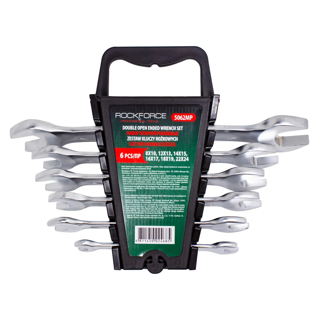 ПроизводителиНабор ключей рожковых, 6пр. (8х10, 12х13, 14х15, 16х17, 18х19, 22х24мм) (RF-5062MP) RockFORCE