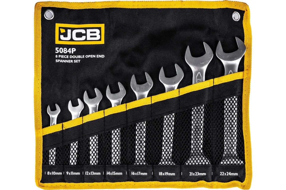 Набор рожковых ключей от JCB — это идеальный инструмент для выполнения слесарных, монтажных и ремонтных работ. Он включает в себя 8 ключей различных размеров, которые позволяют легко и быстро подключать и отключать гаечные гайки и болты, что делает его универсальным инструментом для любых проектов.