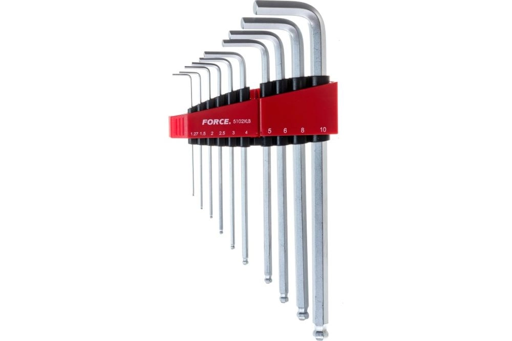 Набор шестигранников длинн. Г-образн. с шаром 10пр. FORCE 5102XLB представлен в оптимальной комплектации и предназначен для обслуживания крепежа соответствующего профиля.