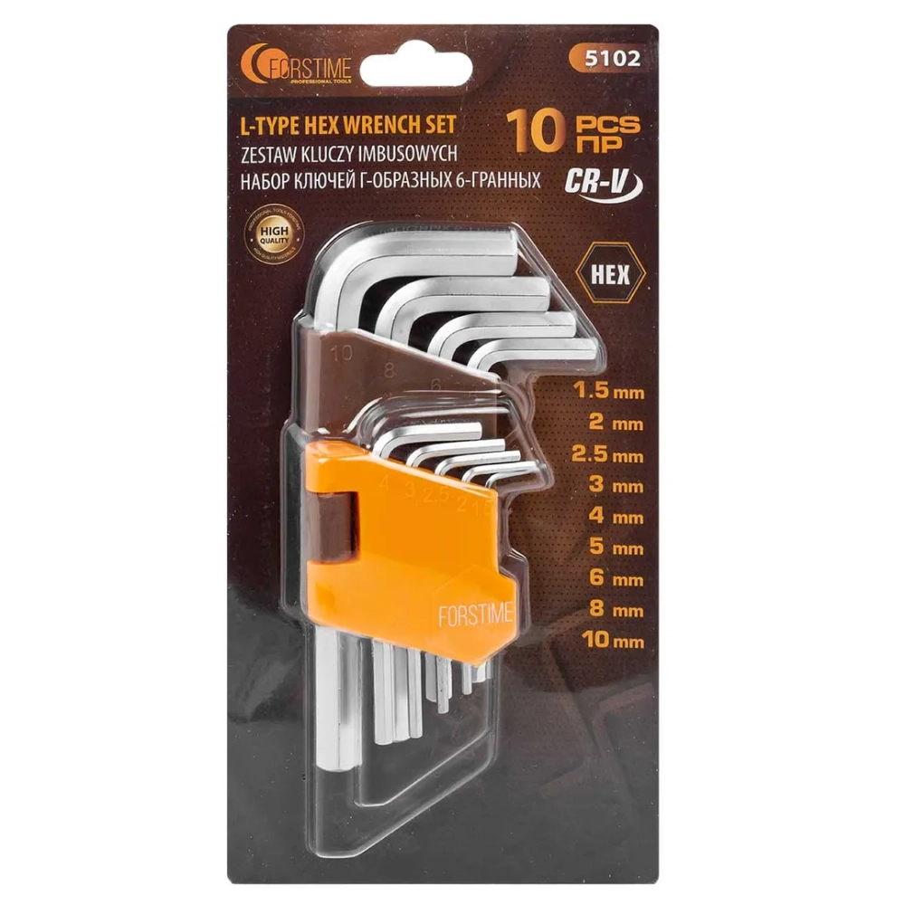 ПроизводителиНабор ключей шестигранных, 10пр.(1.5, 2, 2.5, 3-6, 8, 10мм)(FT-5102) FORSTIME
