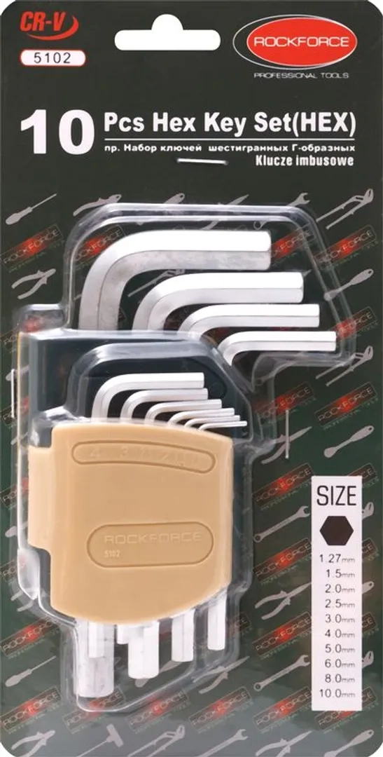 ПроизводителиНабор ключей шестигранных, 10пр.(1.5, 2, 2.5, 3-6, 8, 10мм)(RF-5102) RockFORCE