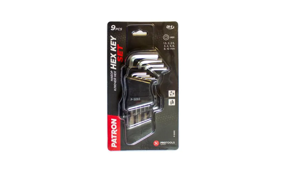 ПроизводителиНабор ключей шестигранных, 9пр. (1.5, 2, 2.5, 3, 4, 5, 6, 8, 10мм)(P-5093) PATRON