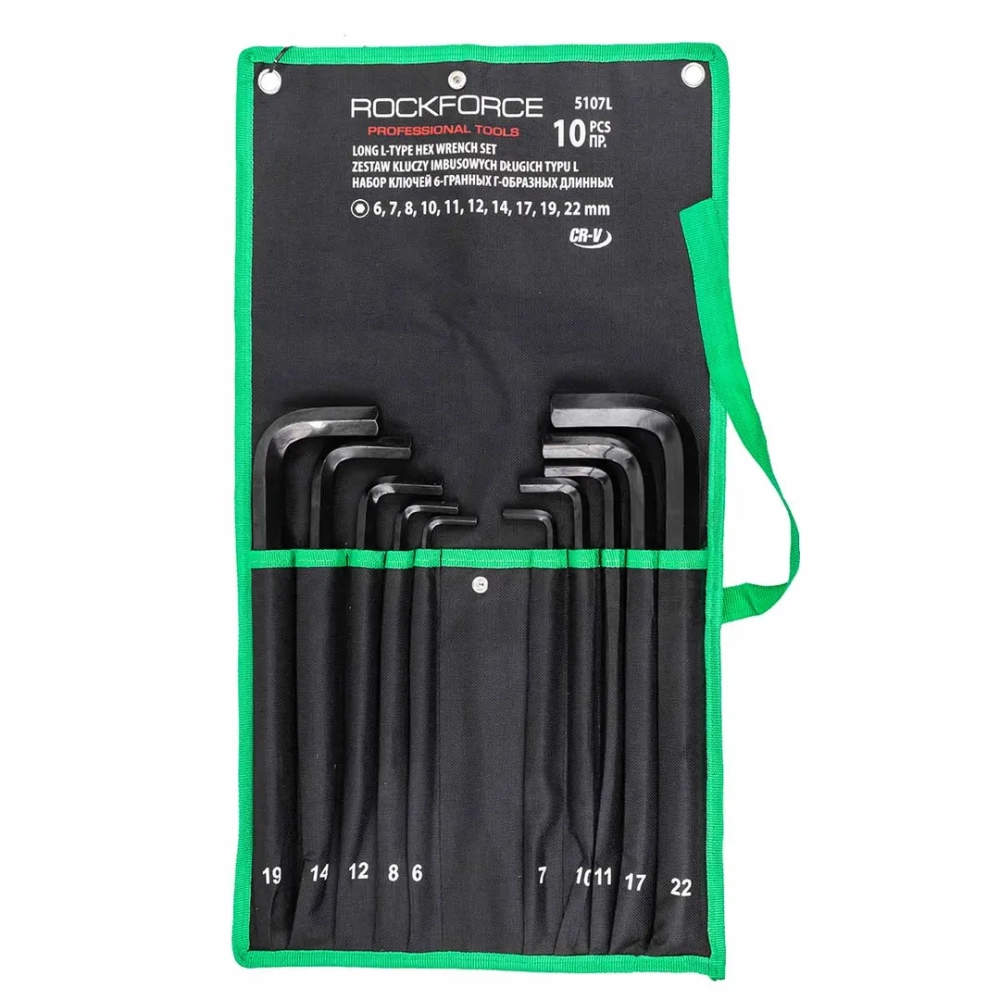 ПроизводителиНабор ключей шестигранных длинные, 10пр. (6-8, 10-12, 14, 17, 19 22мм) (RF-5107L) RockFORCE