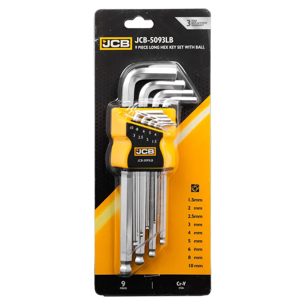 ПроизводителиНабор ключей шестигранных длинные с шаром, 9пр. (1.5, 2, 2.5, 3-6, 8, 10мм) (JCB-5093LB) JCB