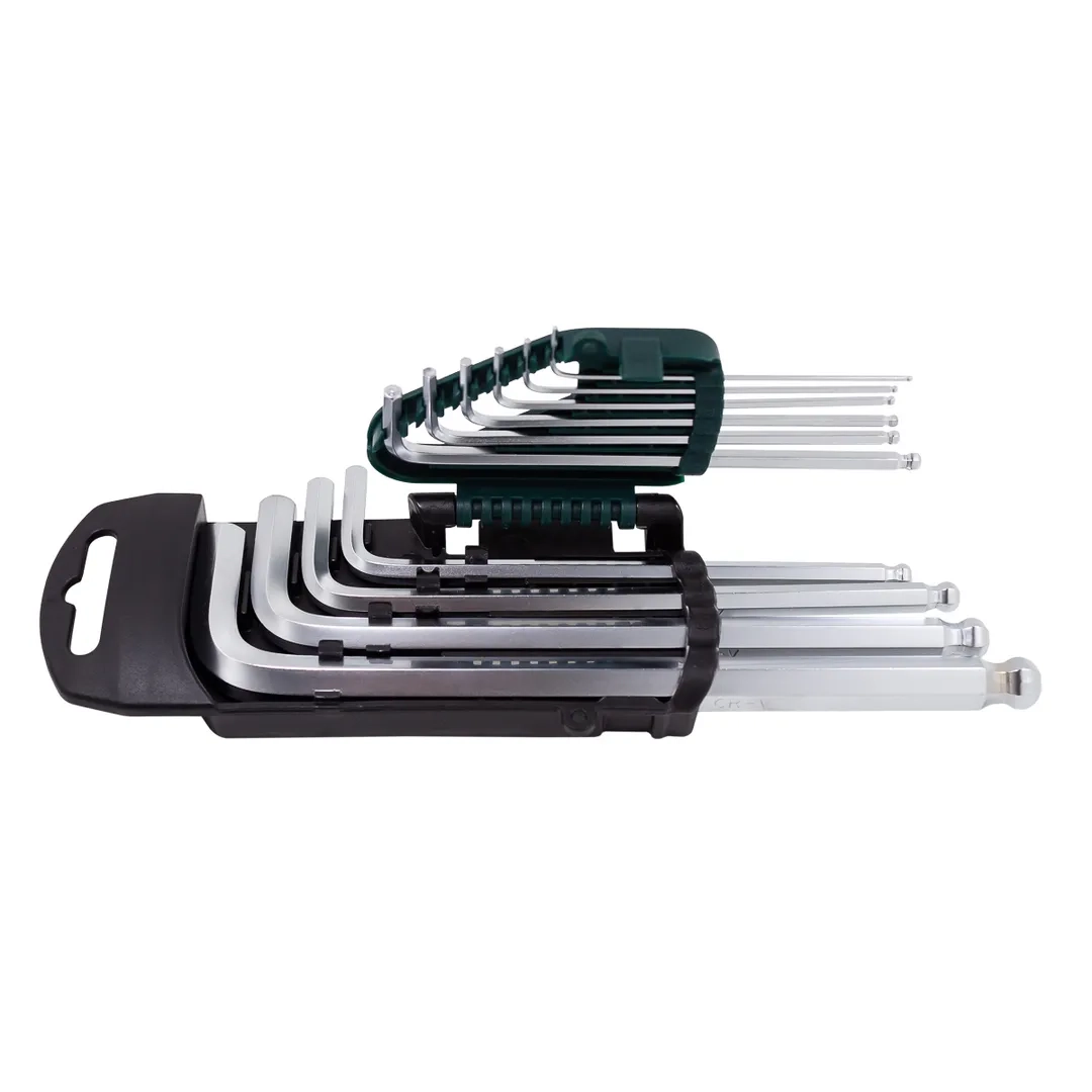 Набор шестигранных ключей Hex, длинных - это профессиональный инструмент для закручивания и откручивания деталей с шестигранными отверстиями. Набор Г-образных ключей шестигранных - это универсальный набор инструментов для слесарно-монтажных работ, содержащий 10 ключей разных размеров. Ключи изготовлены из хромованадиевой стали, отличаются высокой прочностью и устойчивостью к износу. Каждый ключ имеет свой размер и форму, которые позволяют обеспечить надежное крепление и фиксацию крепежа с шестигранным профилем. Шар на конце ключа позволяет легко захватывать ключ и поворачивать его без риска соскальзывания. Набор упакован в пластиковый держатель, который обеспечивает удобство хранения и транспортировки инструментов.