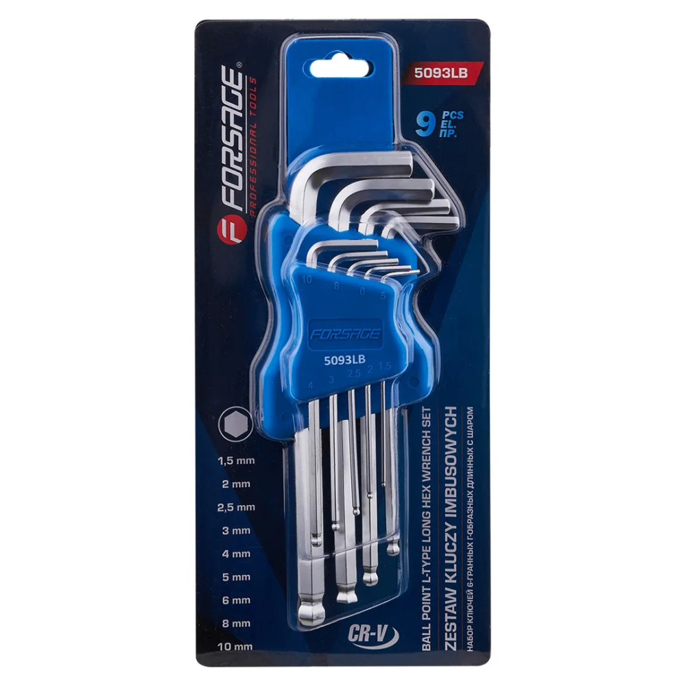 ПроизводителиНабор ключей шестигранных длинных с шаром 9пр. 1.5-10мм (F-5093LB) Forsage