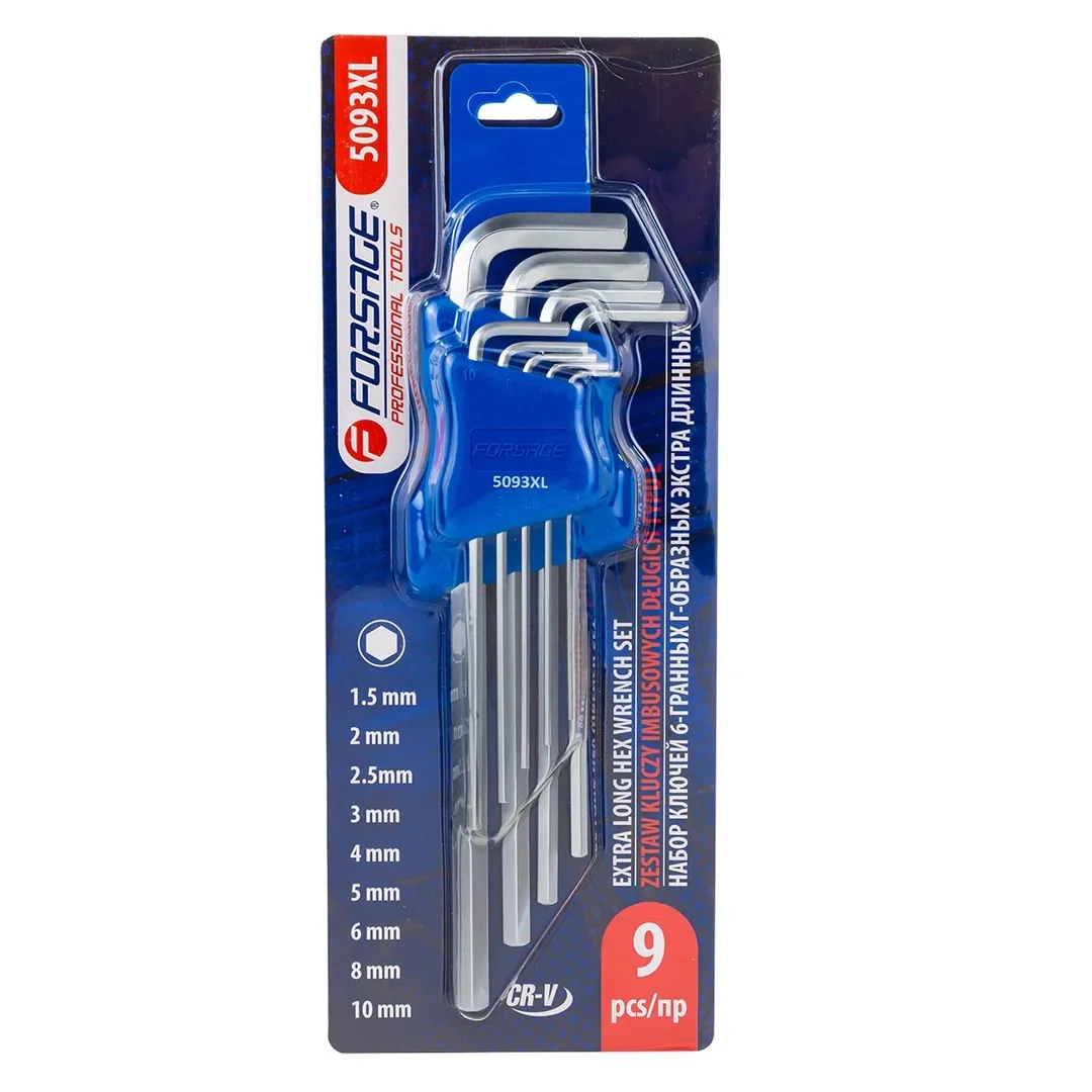 ПроизводителиНабор ключей шестигранных экстра длинных 9пр. (1.5, 2, 2.5, 3-6, 8, 10мм)(F-5093XL) Forsage