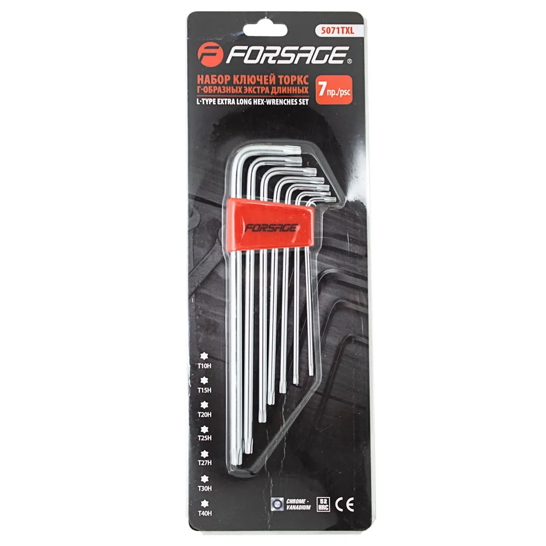 ПроизводителиНабор ключей TORX экстра длинных с отверстием 7пр. Т10Н-Т40Н (F-5071TXL) Forsage