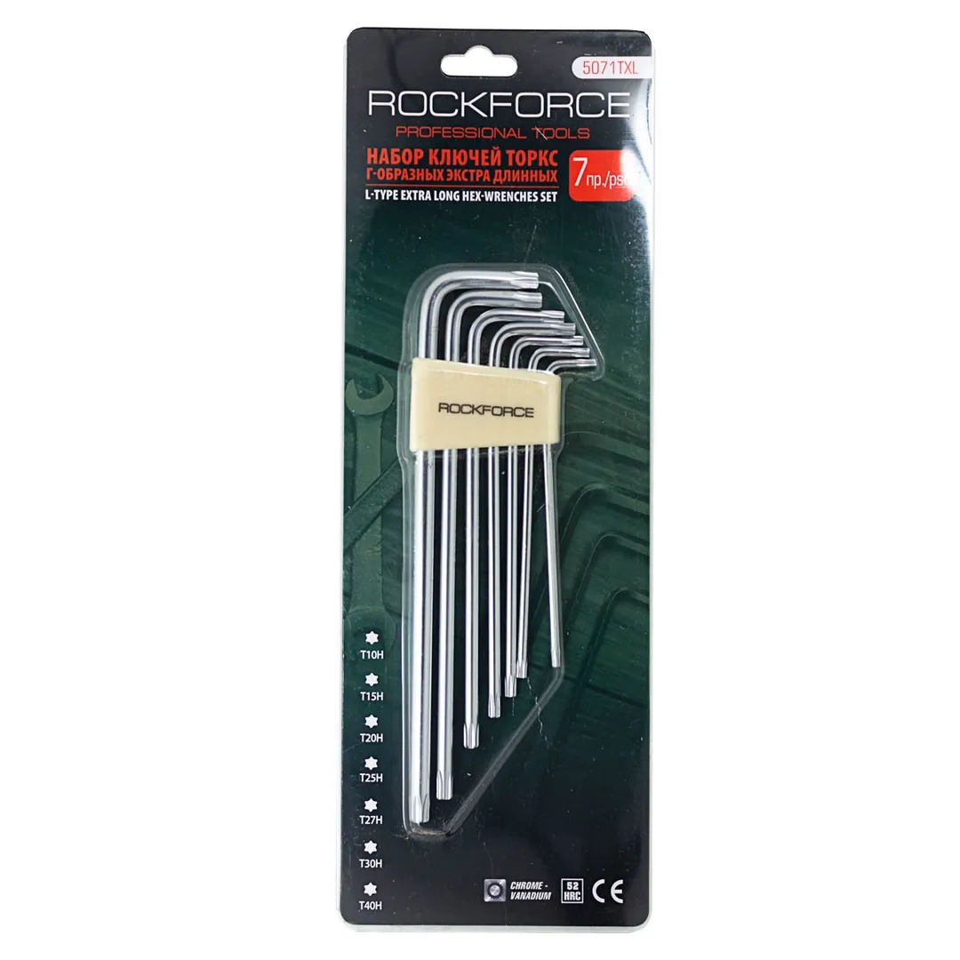 ПроизводителиНабор ключей TORX экстра длинных с отверстием 7пр. Т10Н-Т40Н (RF-5071TXL) RockFORCE