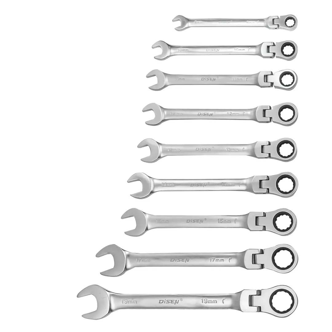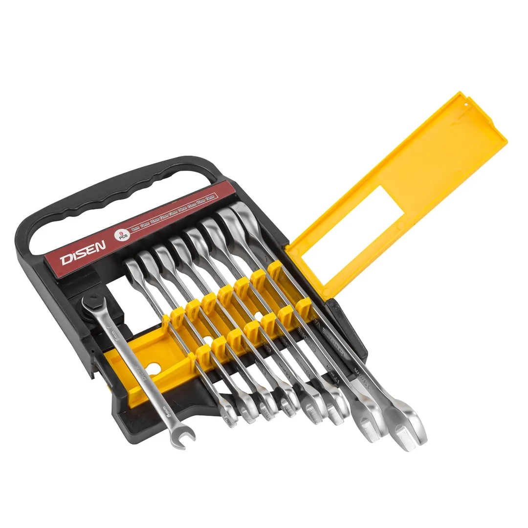 ПроизводителиНабор ключей трещоточных 9пр.(8,10,11,12,13,14,15,17,19мм)(DSD1513) DISEN