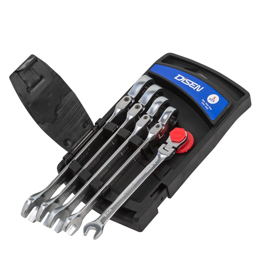 ПроизводителиНабор ключей трещоточных с шарниром 5пр.(8,10,12,13,14мм)(DSD1502F) DISEN