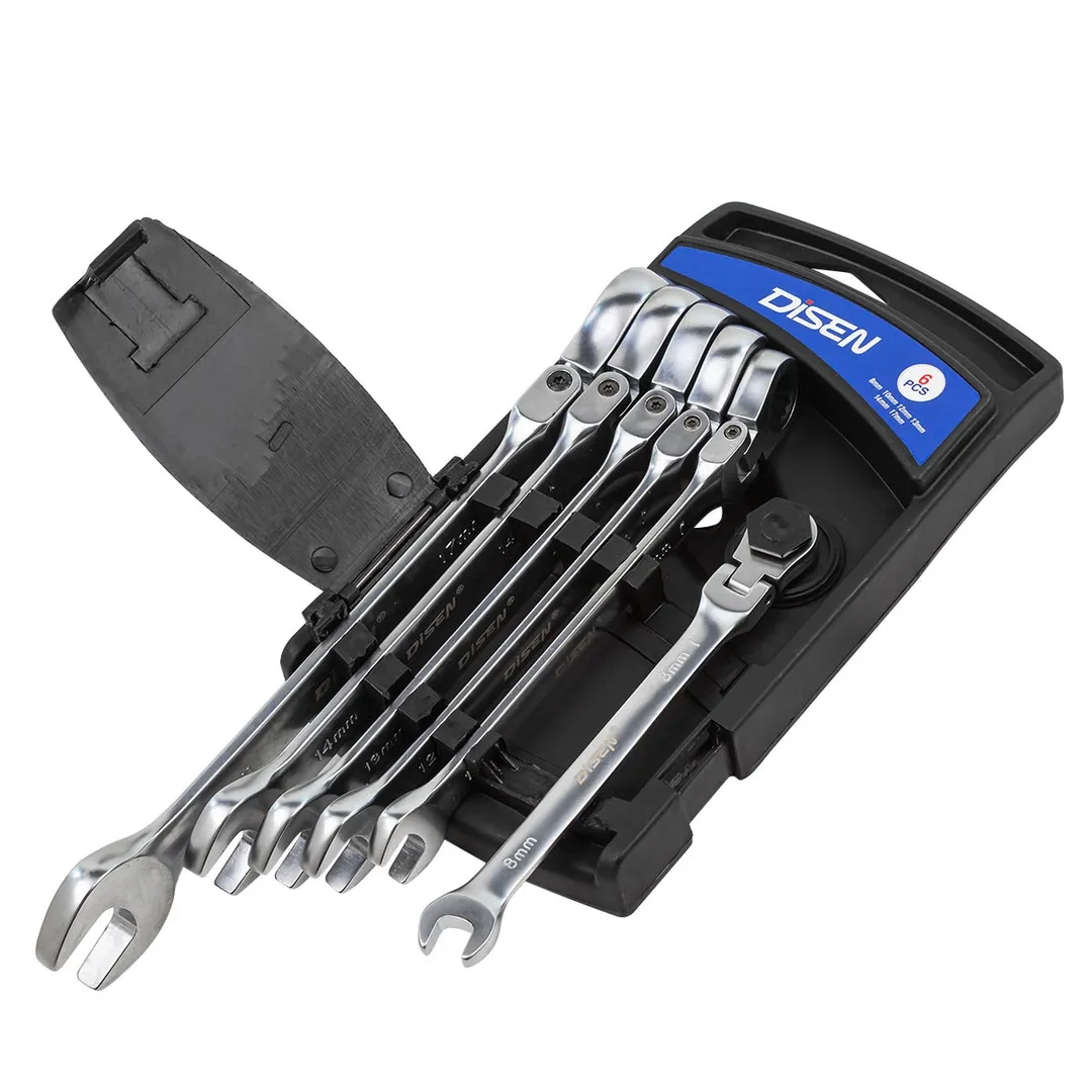 ПроизводителиНабор ключей трещоточных с шарниром 6пр.(8,10,12,13,14,17мм)(DSH1504F) DISEN