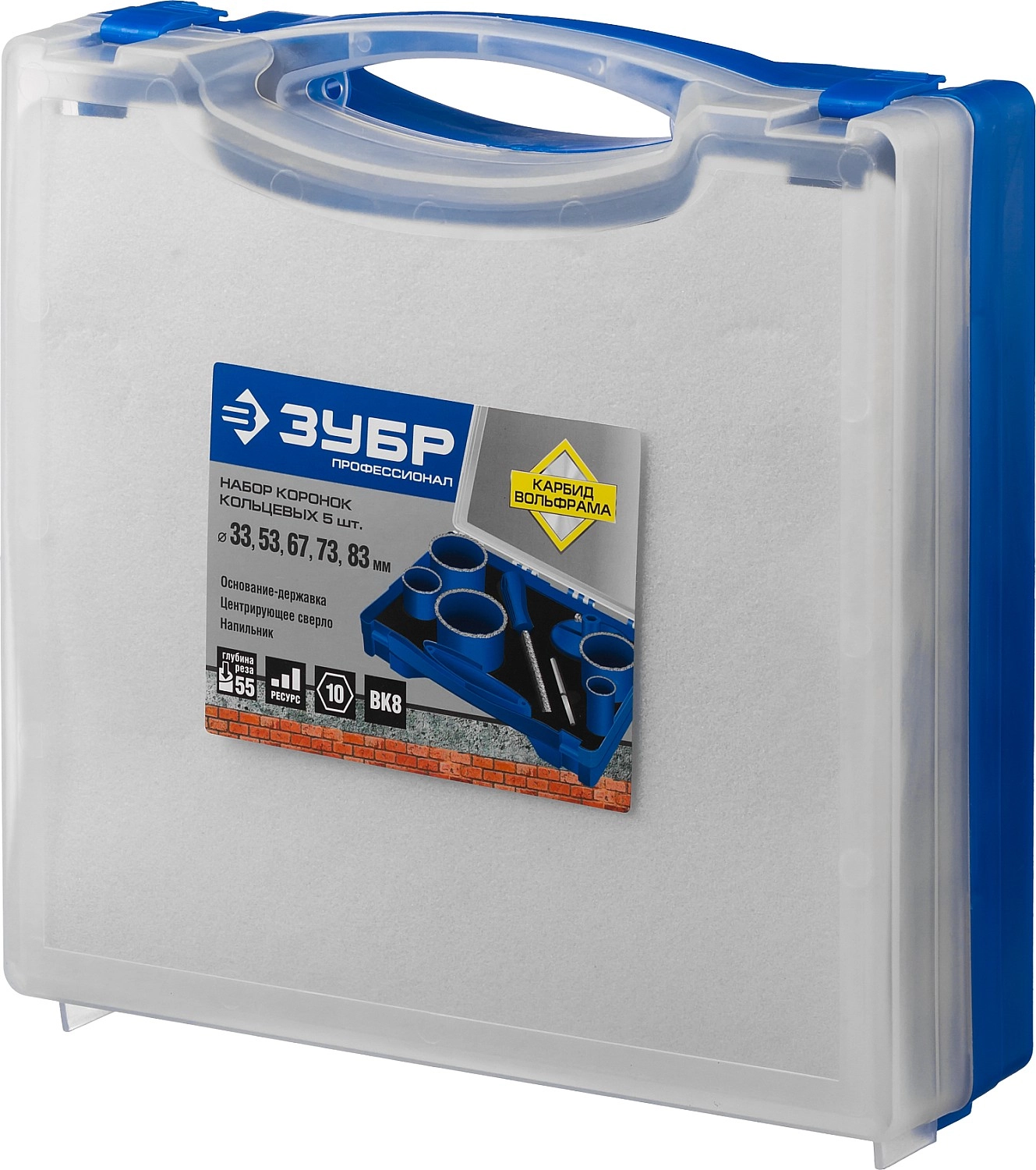 ПроизводителиНабор коронок карбид-вольфрамовых 33-53-67-73-83мм, 8пр., чемодан (33350-H8_z01) ЗУБР