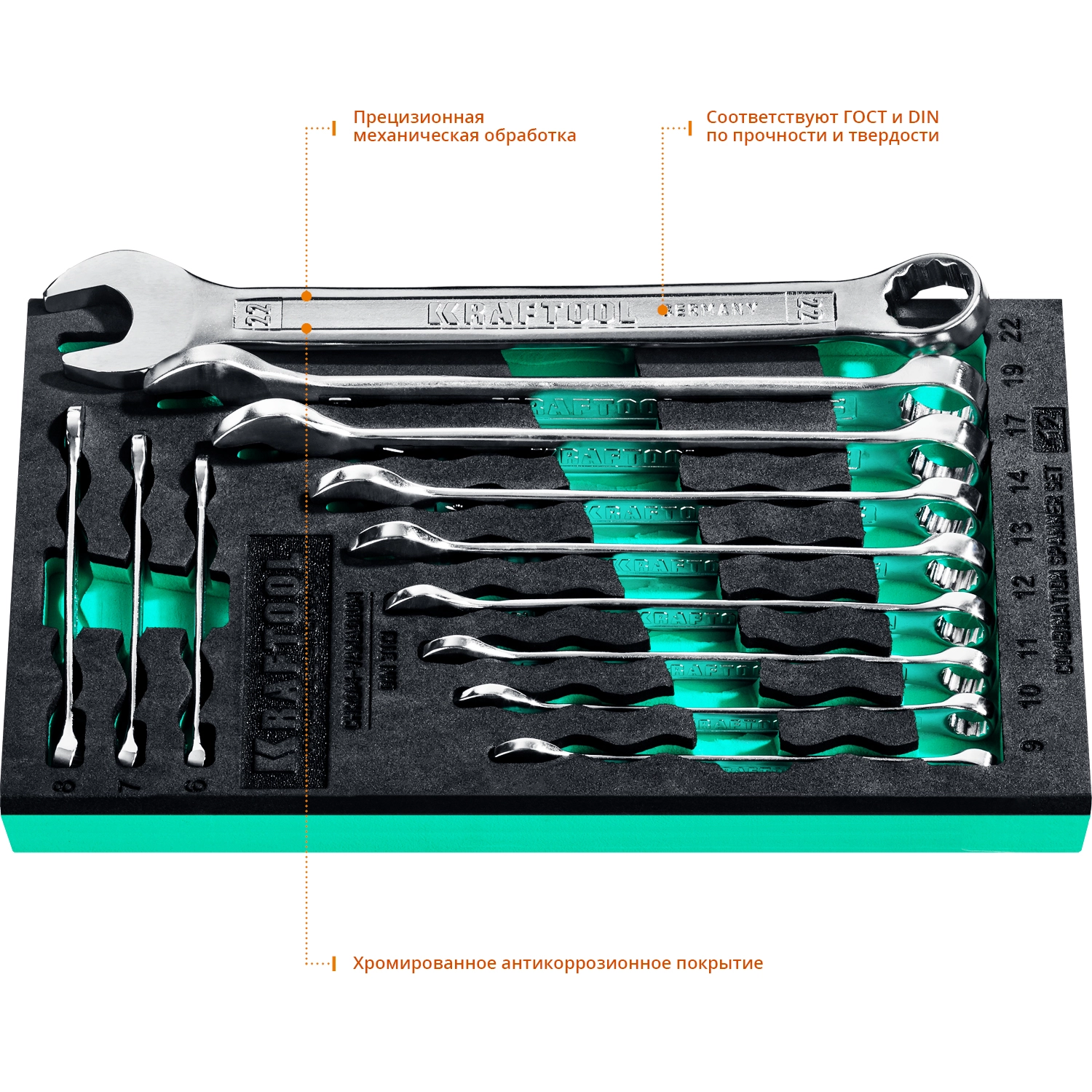 ПроизводителиНабор ключей комбинированных 6-22мм, 12пр. (27079-H12E) KRAFTOOL