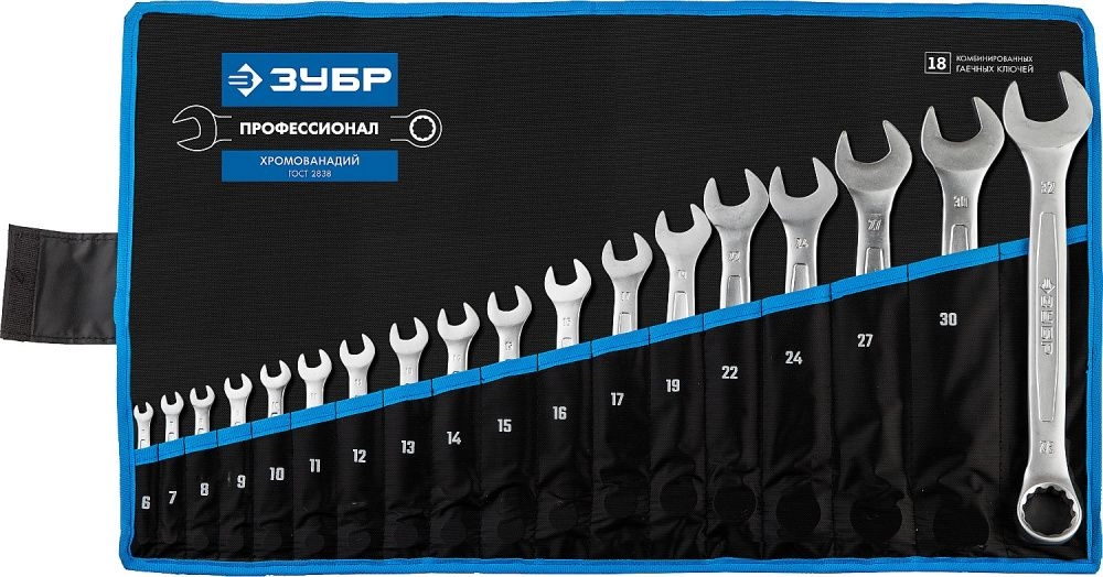 ПроизводителиНабор ключей комбинированных 6-32мм, 18пр., Cr-V "Профессионал" (27087-H18_z01) ЗУБР