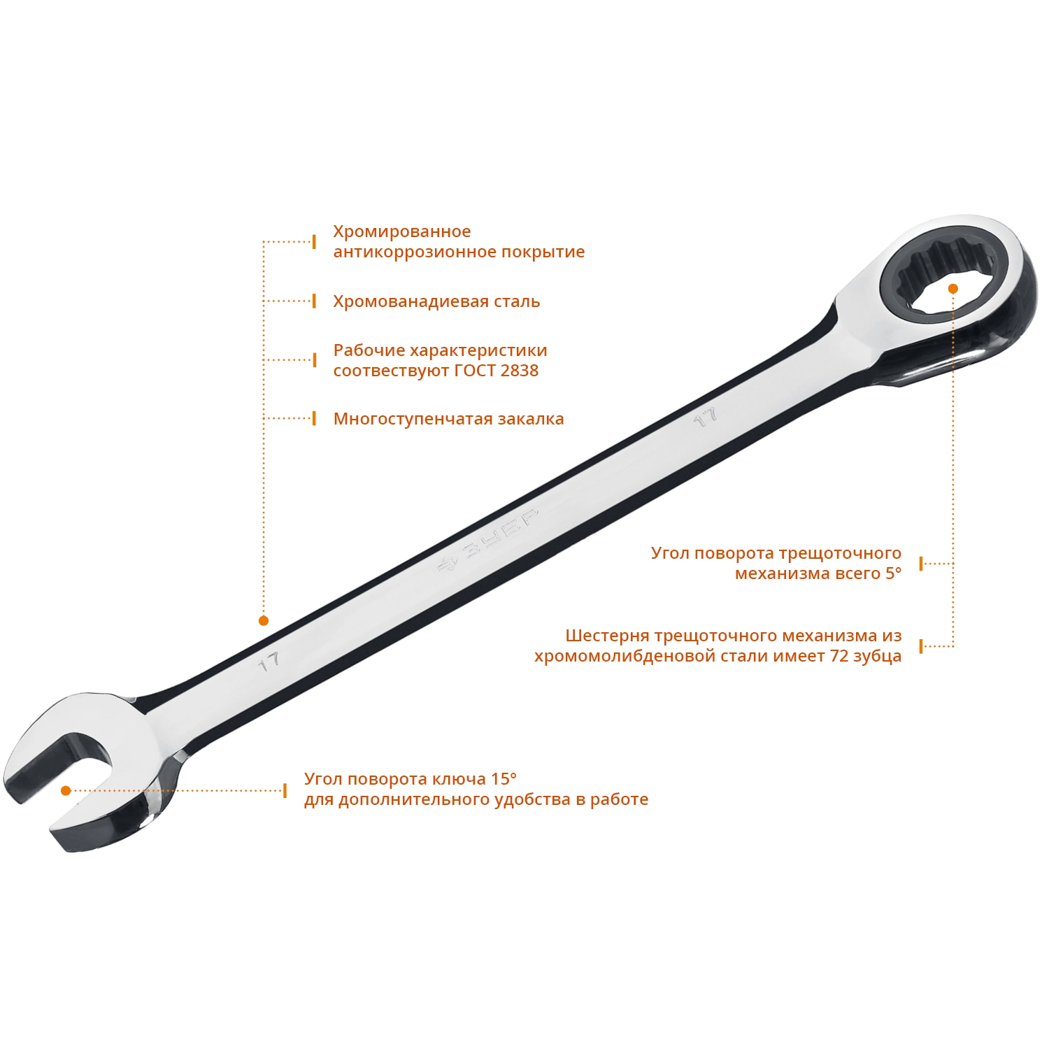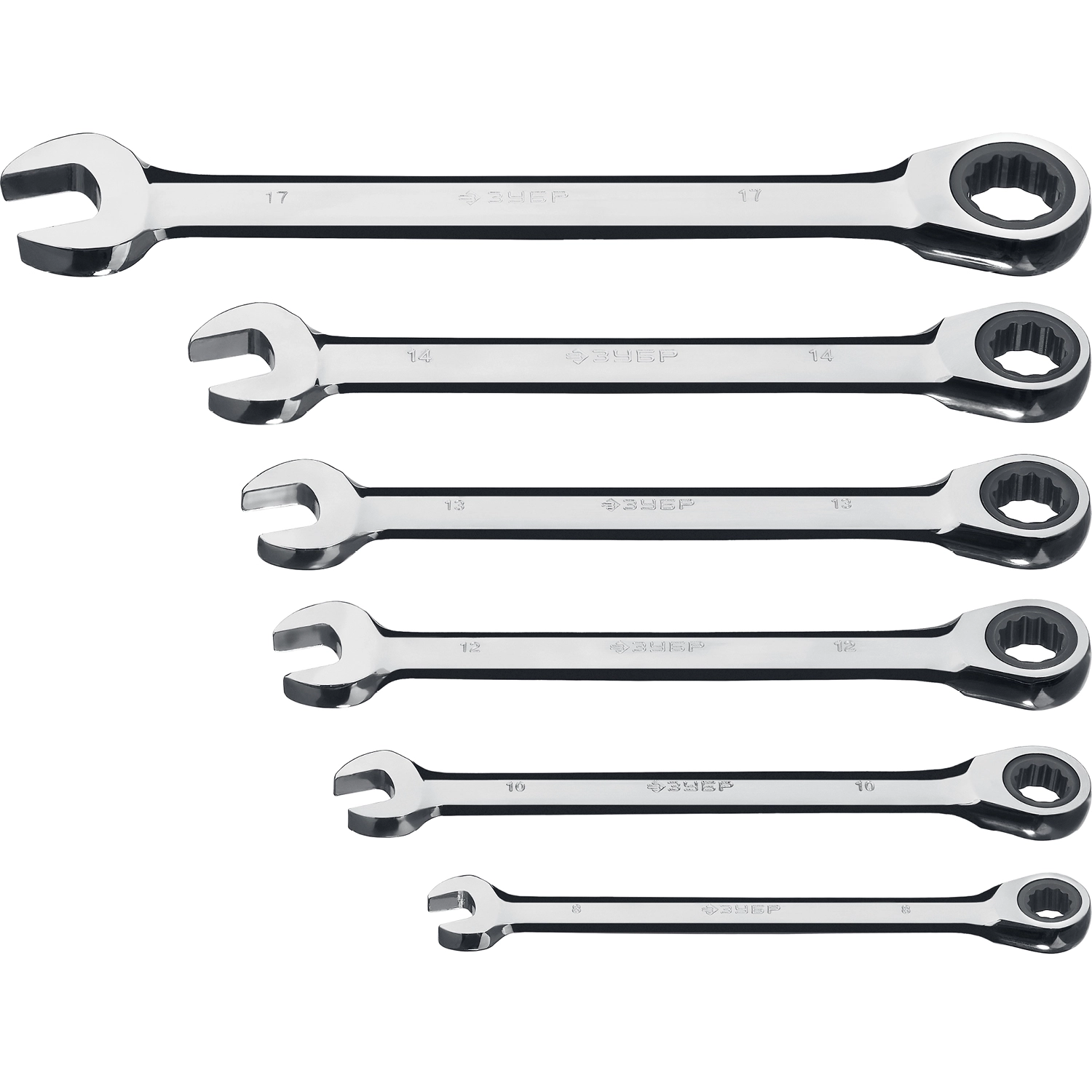 ПроизводителиНабор ключей комбинированных трещоточных 8-17мм, 6пр. (27074-H6_z01) ЗУБР