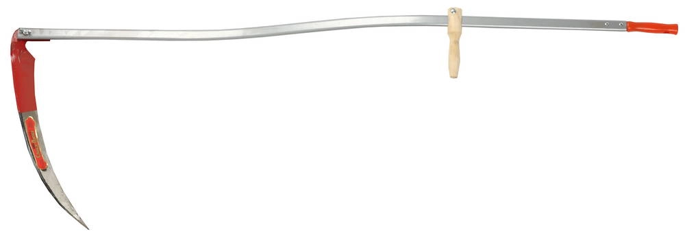 Металлическое косовище из профилированной трубы с одной деревянной и одной пластиковой ручкой.