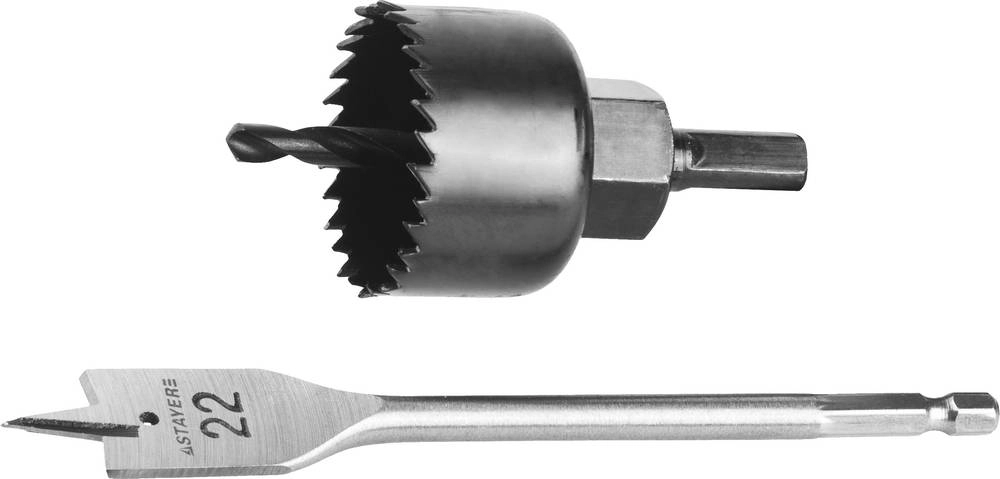 ПроизводителиНабор для врезки замков: коронка по дер. 48мм, державка, перьев. св. 22мм "MASTER" (29605-H3) STAYER
