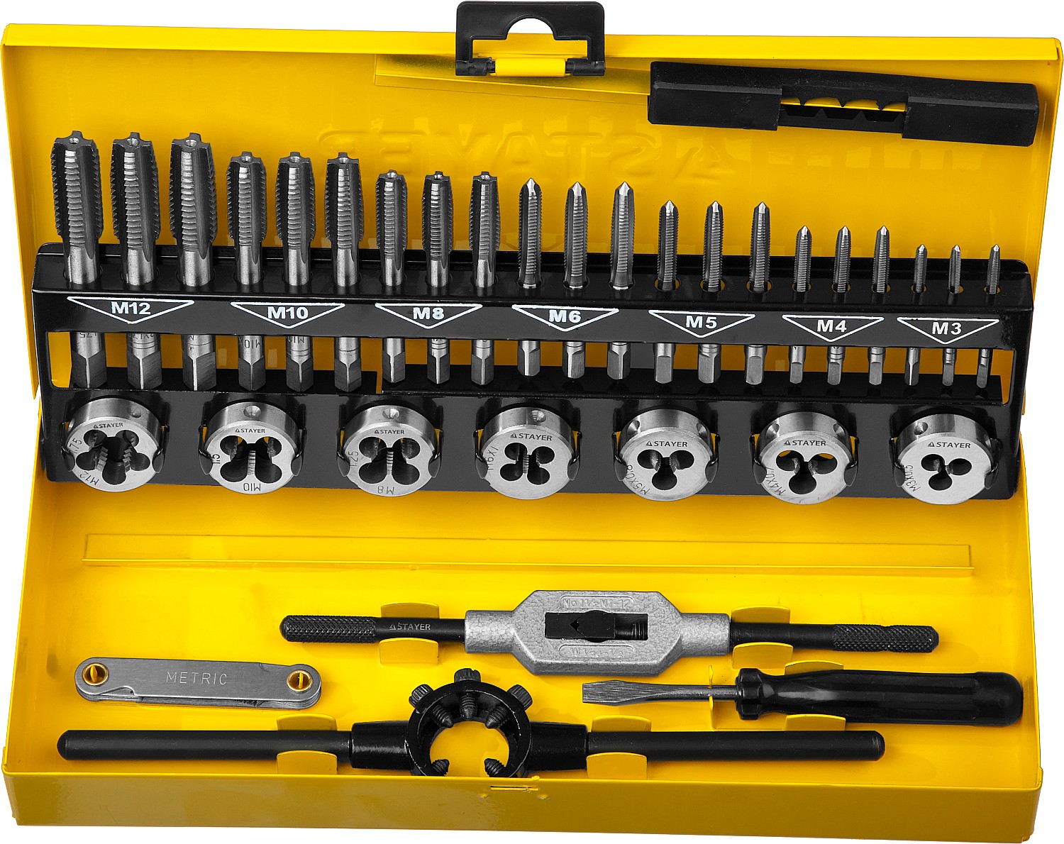 ХарактеристикиАртикул 28014-H32Бренды StayerСтрана производства КитайТип изделия наборыВес, кг 1.3684Набор метчиков и плашек STAYER отлично подходит для получения качественной и чистой внешней и внутренней резьбы