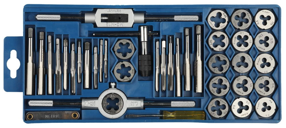 ПроизводителиНабор метчиков и плашек M3-M12, 40пр., 9ХС (2810-H40_z01) ЗУБР