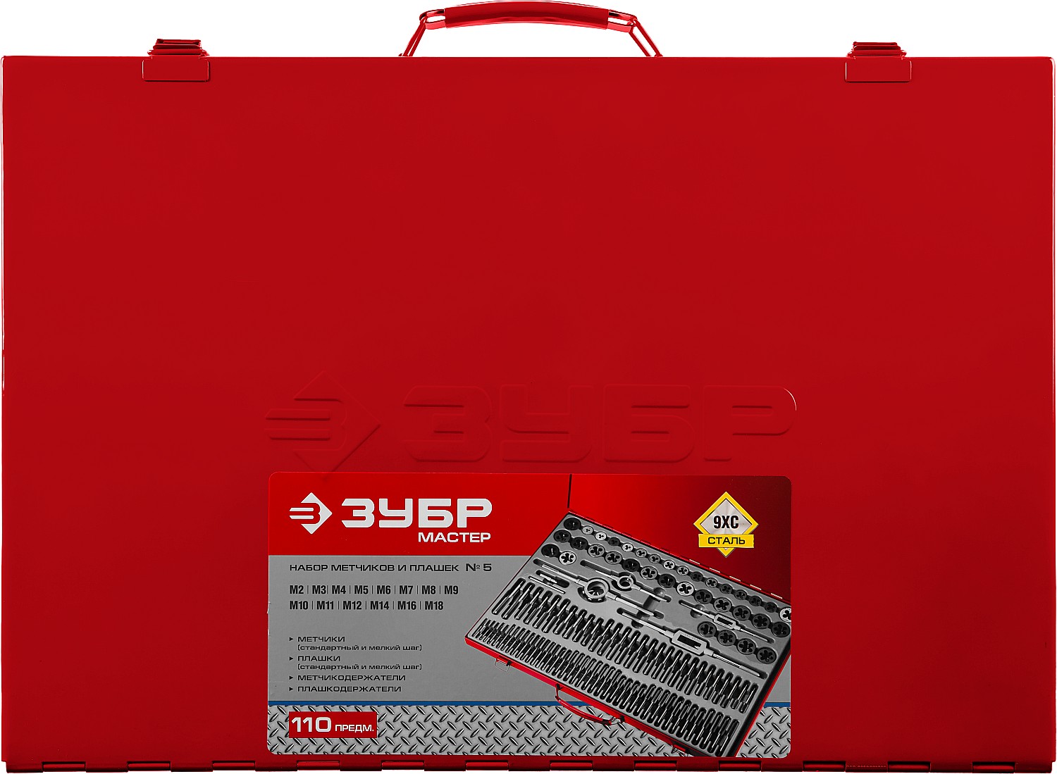 ПроизводителиНабор метчиков и плашек M2-M18, 110пр., 9ХС "МАСТЕР" (28119-H110_z01) ЗУБР